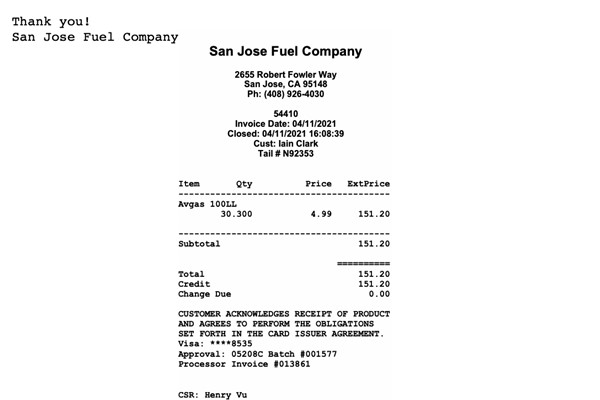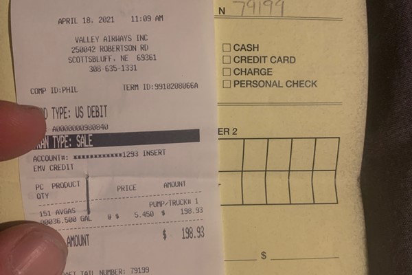 View Imagefuel_receipt_04112021.png - Flight By: Iain Clark on 4/11/2021 - Total Time: 1.2 - N92353 CESSNA 182N (182N)
